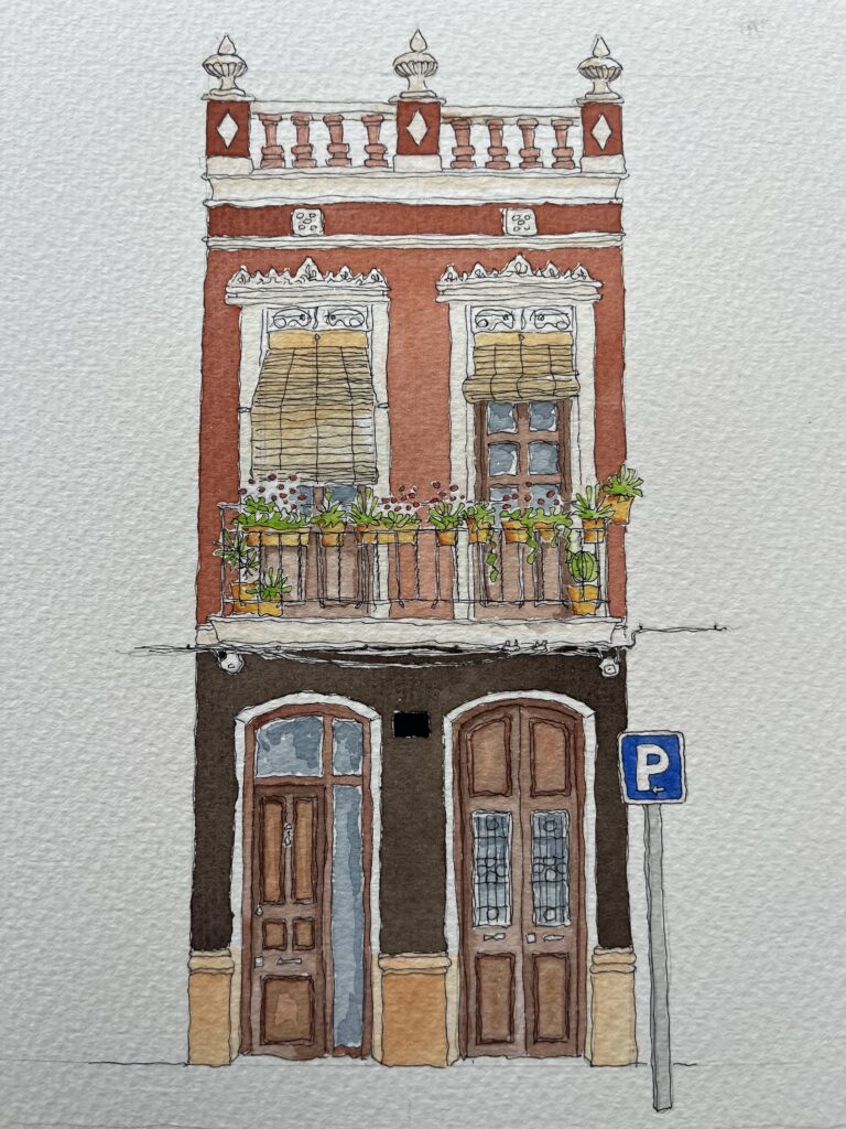 Colección de 40 ilustraciones de las casas más pintorescas del Cabanyal – Canyamelar. Técnica Portaminas+Rotring+Acuarela. Los tramos de calles más conocidos, tiendas y bares icónicos.