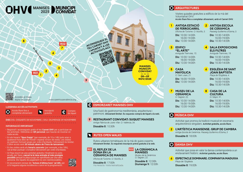 La major part de les activitats són gratuïtes i sense inscripció, només necessites el teu Carnet OHV. Registra’t i obtindràs un QR personal, que serà la teua clau d’accés a les visites i activitats gratuïtes del festival. Guarda el QR al teu mòbil (també el pots imprimir) i mostra’l en arribar a un edifici o activitat.