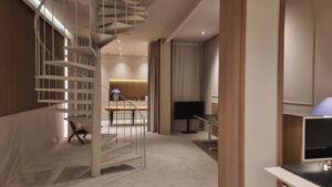 El proyecto conserva elementos originales que aportan carácter, como la escalera preexistente, que conecta con un sótano transformado en zona chill out: un espacio relajado para la interacción social y la creatividad fuera de la rutina laboral.