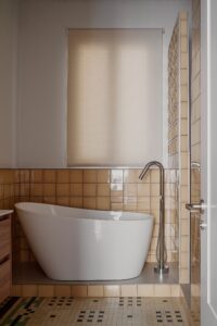 En esta intervención apostamos por preservar y realzar esos elementos: los techos altos con molduras y los suelos hidráulicos se mantienen como protagonistas de la vivienda.