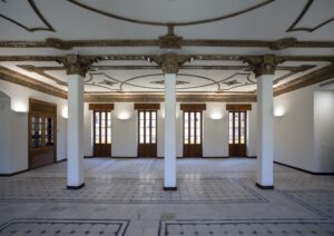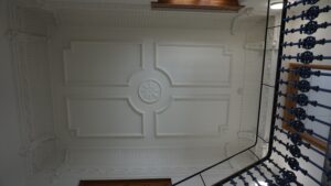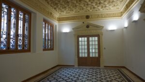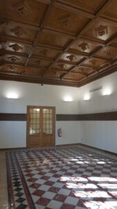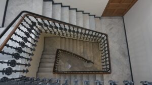 El medio de comunicación entre las tres plantas son tres escaleras, una central y dos laterales ejecutadas con bóveda a la catalana y con barandilla de cerrajería rematada con pasamanos de madera.