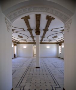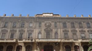 Su sistema estructural se basa en muros de carga en fachada y pilares interiores. Construido entre los años 1.921 y 1.924, presenta una estructura interior de hormigón armado realizada con la patente Hennebique.